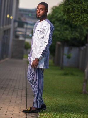 Anidasuo Navy-Blue Stripes is a contemporary mens wear made from original Italian suit fabric nicely piece together to make kaftan apparel . It is most worn by people who want to look unique.