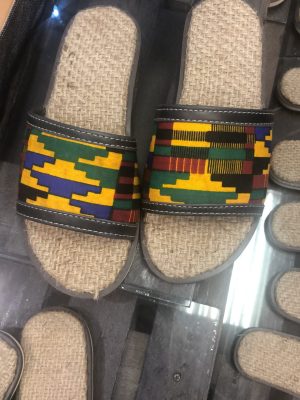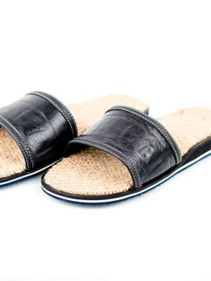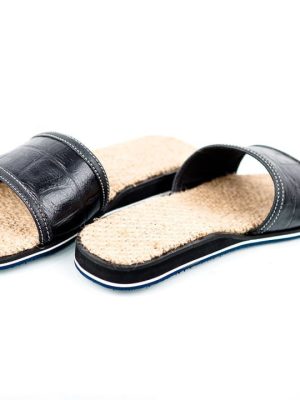 A hand made slippers made from cocoa jute sack combined with quality Italian black leather as the top , given you a comfortable walk while the jute sack massages your feet.