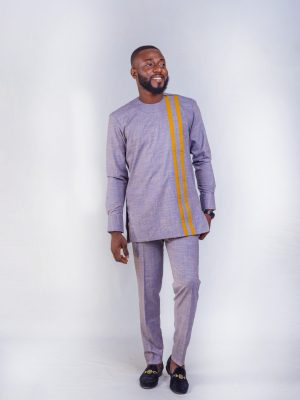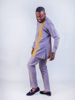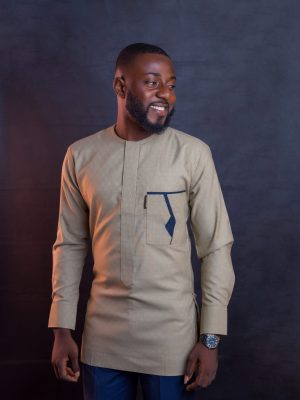 Okodie Long Sleeve Kaftan – Consciously sown African apparel made from quality Italian fabric with a vertical line awesomely crossed on the left.